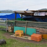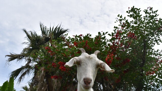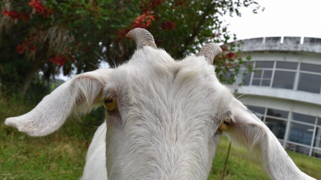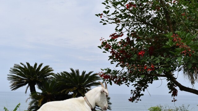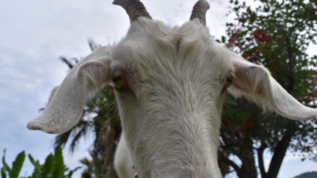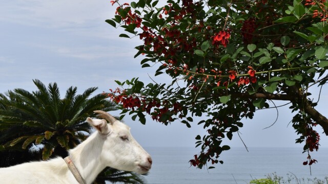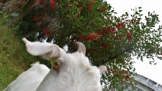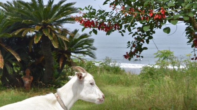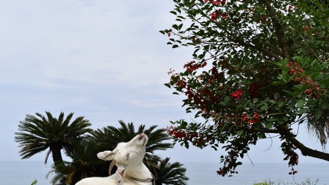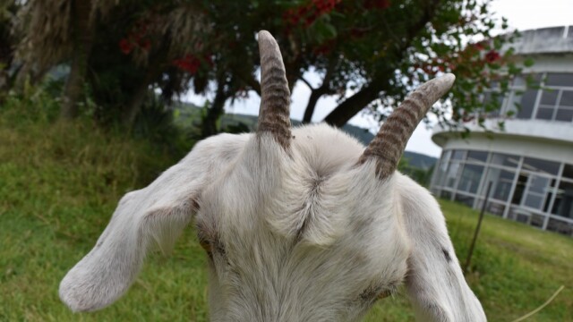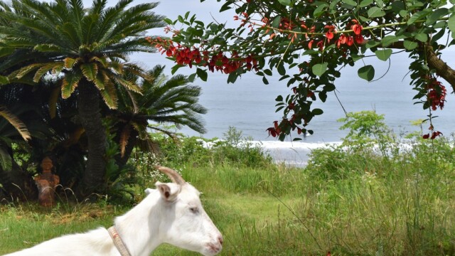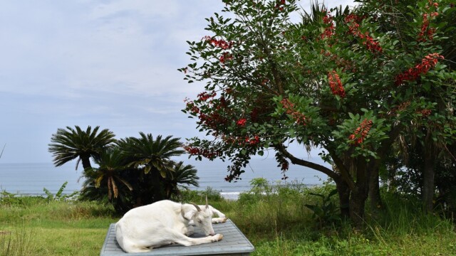 お倉ヶ浜海水浴場のすぐ近くの有名なサーフスポットです。ヤギが居ますね。写真をパチリと。