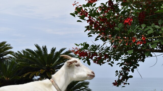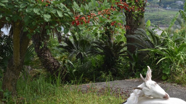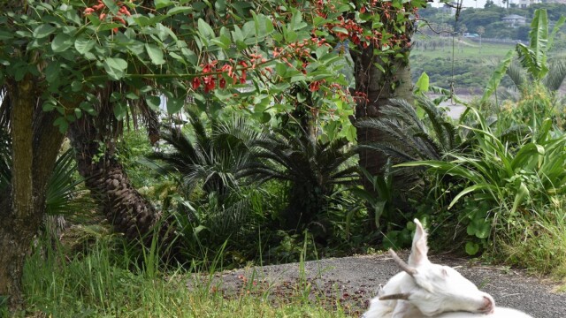 駐車場に入ると目の前は雄大な日向灘。ふと脇に目をやると、、え?ヤギ?? 沢山居ます。駐車場の左脇にはヤギの群れが、道路からの入り口の植え込みゾーンにも何匹かのヤギが居て、入ってくる車を出迎えてくれています。さらに、うさぎのおうちや、子ヤギ小屋もあります。