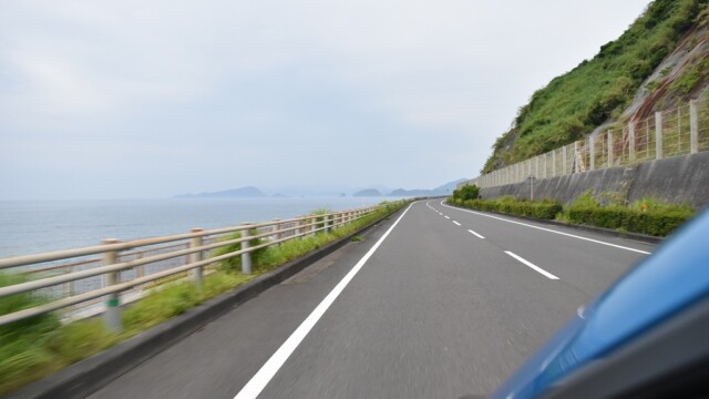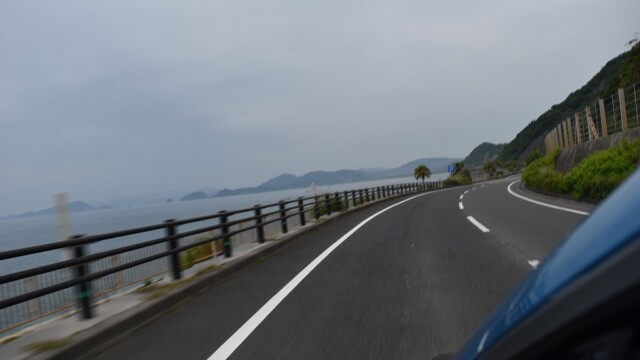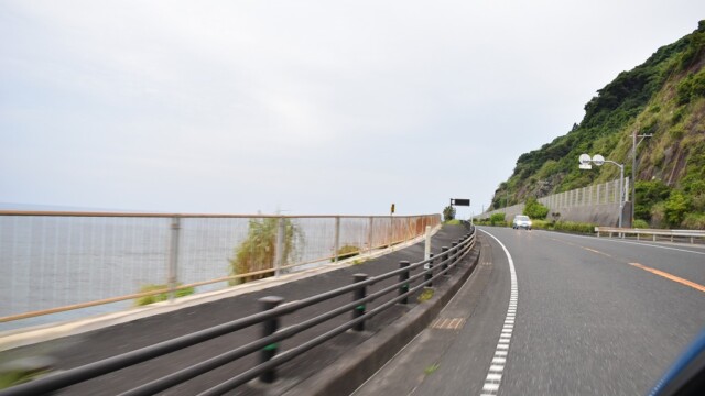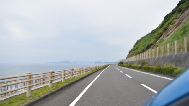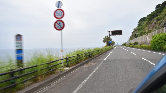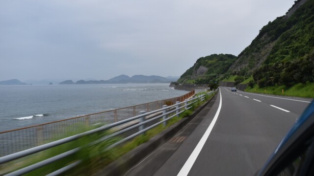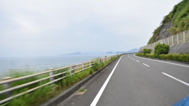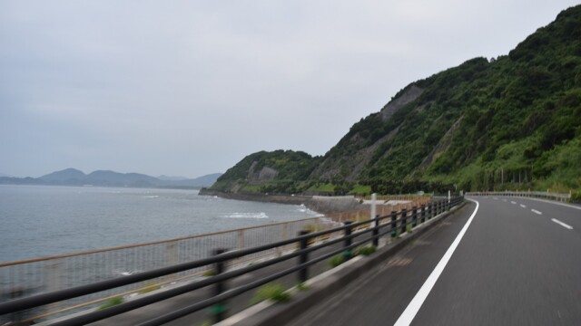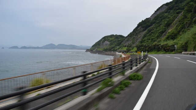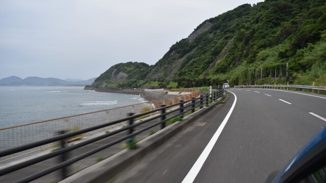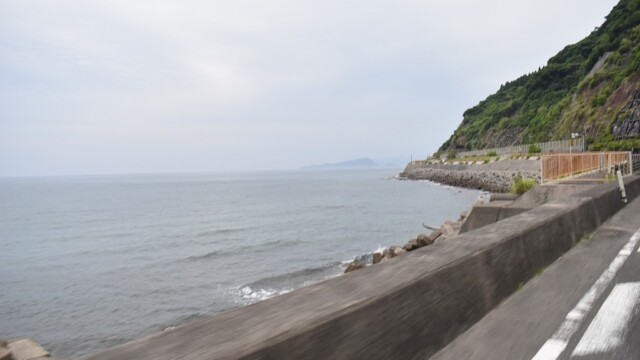 以前、友人がここでよくサーフィンをしていたそうで、一度、来てみたかった場所です。途中、景色の良い海沿いの道が続きます。(ちなみに撮影は安全を考慮した装置を使用しています)
