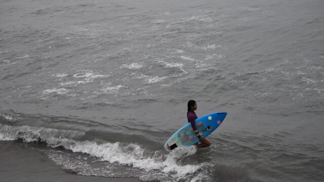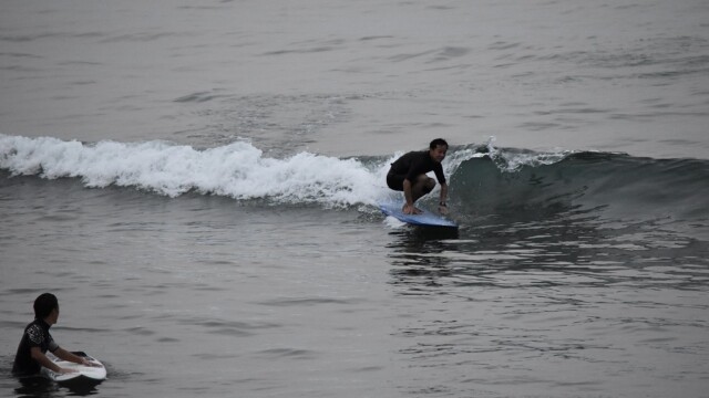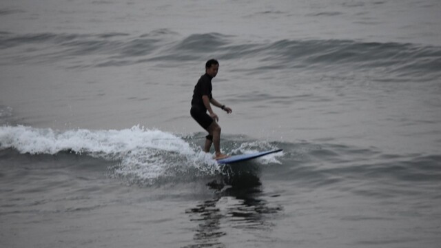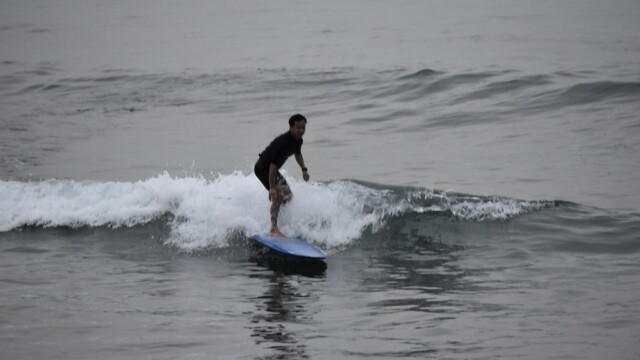 サーフィンしている人の写真をパチリとフレームに収めます。ロングの人、気持ちよさそうに乗っています。