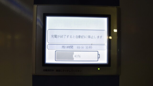 充電速度かなり遅い。。充電中に1時間ほどかけてご飯食べたりして、時間つぶしたのに充電が終わっていません。満充電になるまでどれくらい時間がかかるか分かりません。途中で中断して鹿児島を目指すことにしました。