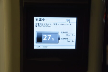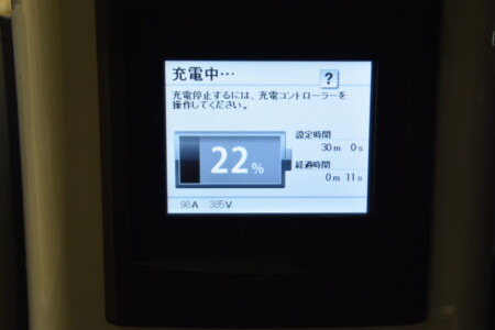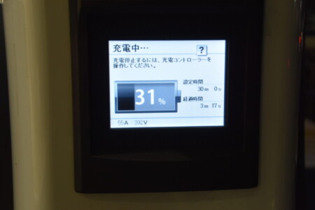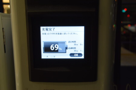 職場の200Vコンセントを利用しフル充電を行いました。航続可能距離は95kmと表示されています。7セグにまで弱っているバッテリーでも、これだけ充電できるとは、正直、驚きました。