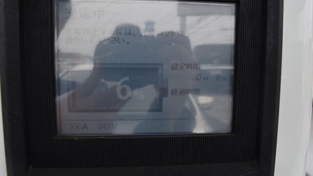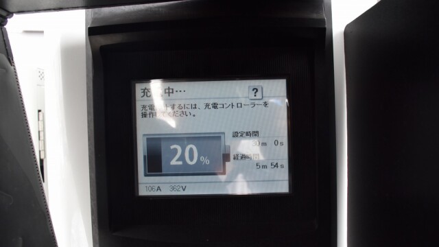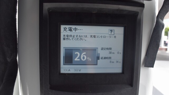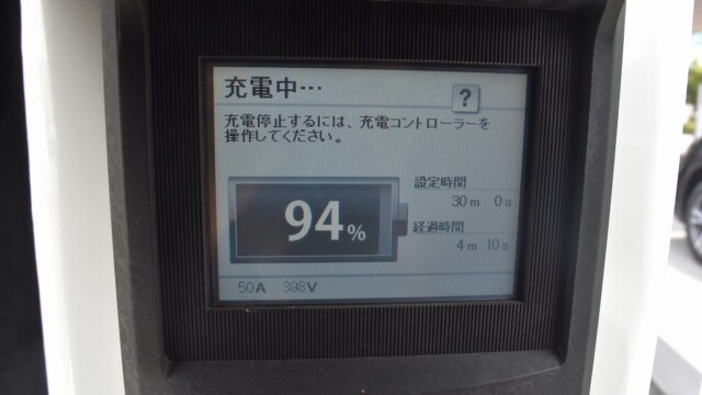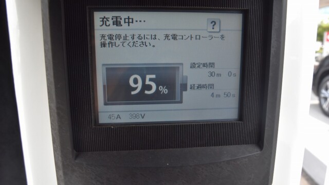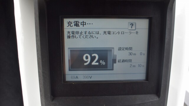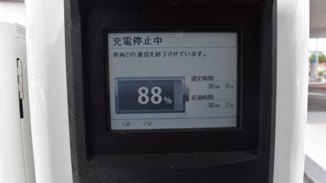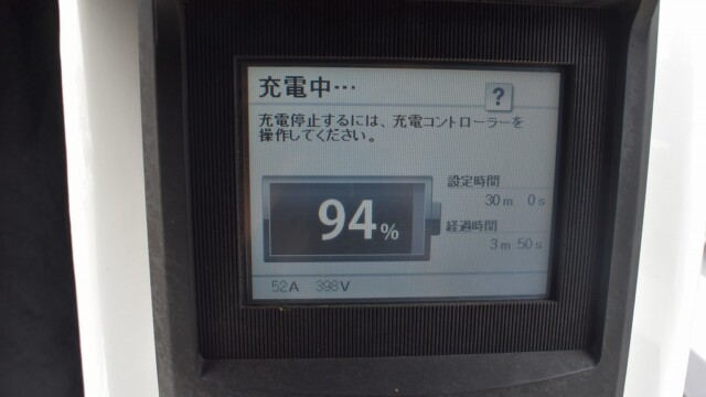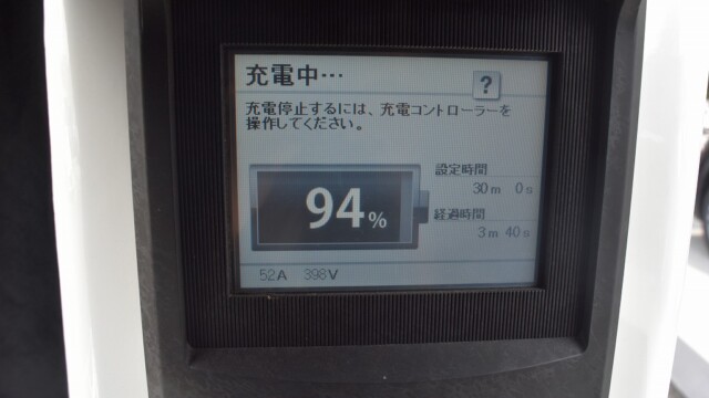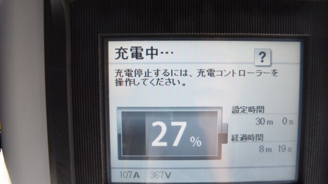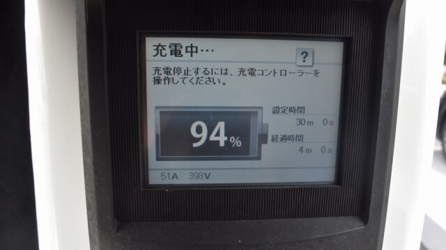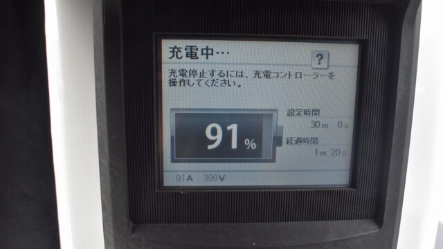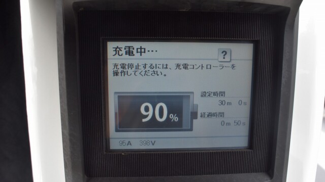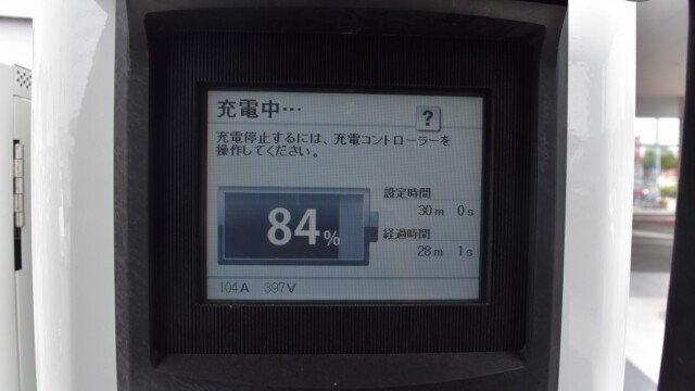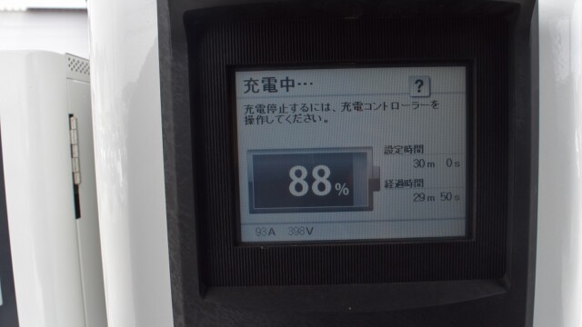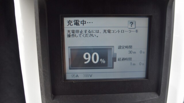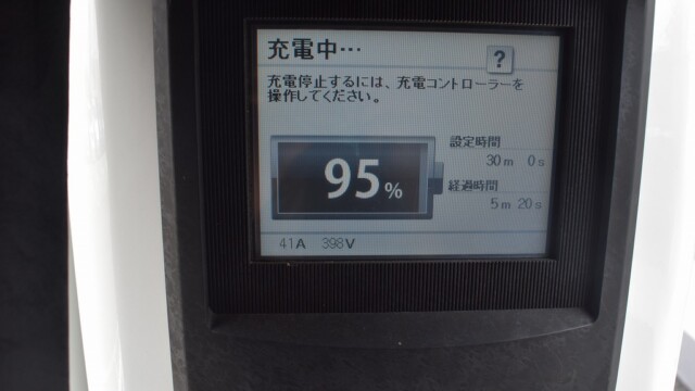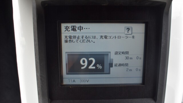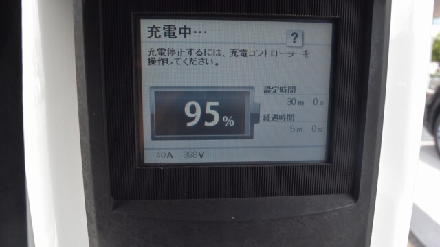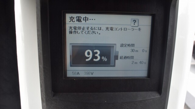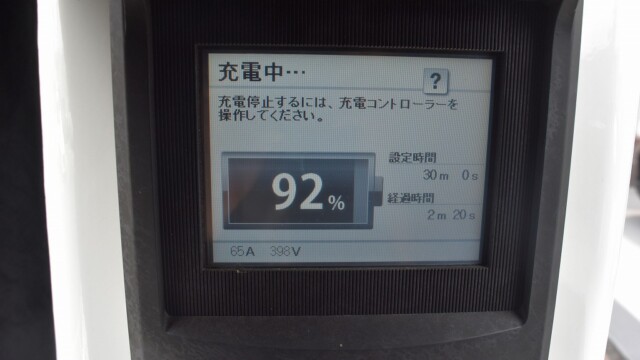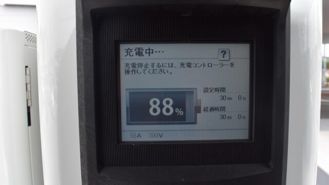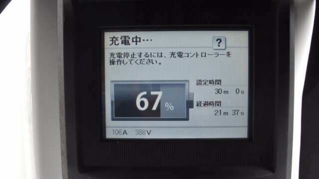 以前から、電気自動車の急速充電は80%~95%ぐらいで中断するほうが良いと自論を述べてきましたが、それが簡単に理解できる様、充電する時の、出力の変化の様子を写真に撮りました。