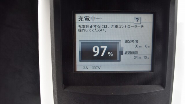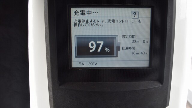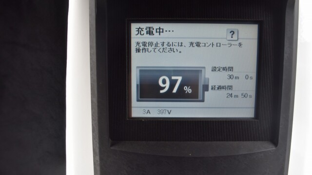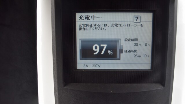 充電器の設定時間まるまる30分を使って充電しました。