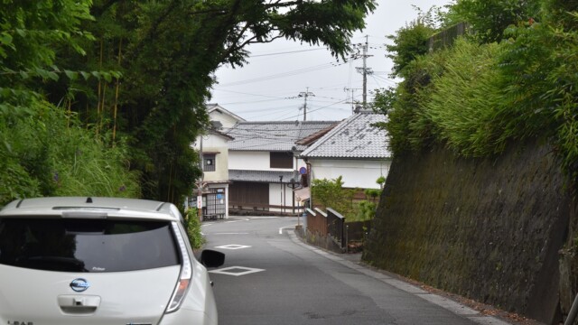 ※写真3の青い点の位置に居ます。目的地までギリギリの距離ですが、ラッキーなことに、ここから下り坂が続きます。回生ブレーキによる充電をフルに活用して、電気を貯めながら走行します。