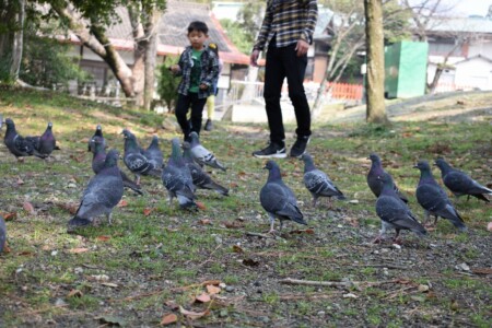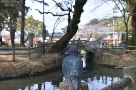 鯉も泳いでいて良い感じです。お、鳩が居ますね♪ 写真をパチリ。
