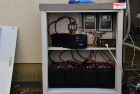 なお先に書いた通り、ソーラパネル(255W 6枚)の理論上の発電量は1530Wあります。最大でも500W前後しか発電しないという残念な結果でした。ですがバッファーとして利用したバッテリー(ACデルコ M31MF)は一つ115Ah(20時間率)あるので電圧12Vを乗じた単純計算では1.38kWhとなります。今回4つ使用したので、そもそも5.52kWhの蓄電容量がありました。もちろんディープサイクルなので100%近くは放電できないと思いますが、この蓄電池をソーラ充電しながら使用した場合、4kWh程度なら、何とか電気自動車を充電できる事が判りました。