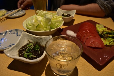 鳥皮たれ焼、砂ずり、鳥肝、ぼんじり、せせり、かしわのねぎま、ささみ梅じそ巻、特製つくね(なんこつ入り)、手羽先1本焼、豚ばら塩焼、豚ばらねぎ味噌、あと何だっけな? とりあえずラストオーダーなので、焼き鳥を注文しまくりました。(;^ω^) 閉店間際にゴメンなさい嫌な顔一つせず店員さんがオーダーを取ってくれます。すぐさま、「お通し」と「キャベツ」が出てきます。厨房を見ていると、炭火をパタパタ、いい匂いがしてきます。すぐさま出てきた焼鳥、おぉ、(#^.^#) これはウマィ!! 炭火だからなのか、鶏肉が良いのか、焼き加減も味付けも完璧サイコーに美味しいです(#^.^#) これは繁盛する訳だ。なっとくの味です。