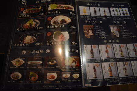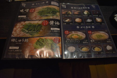 前回はもっともオーソドックスな「味噌」を頼みましたが、今回は人気の「田しゅう鍋」を注文します。追加で「牛ハツ刺し」と「かりかりキュウリ」を頼みました。