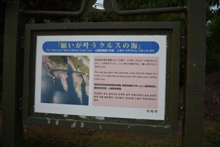 まずは「願いが叶うクルスの海」。ここは柱上岩が浸食によって裂け、十文字(クルス)に見える事から、この名がついたそうで、ここで祈りを捧げると願いが叶うと言われています。