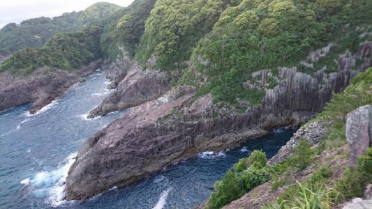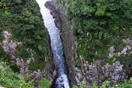 続いて「馬ケ背」。ここは日本一の柱状岩と呼ばれ、高さ70mにも及ぶ断崖が青い海にそそり立ち、そのダイナミックな景観に圧倒されます。