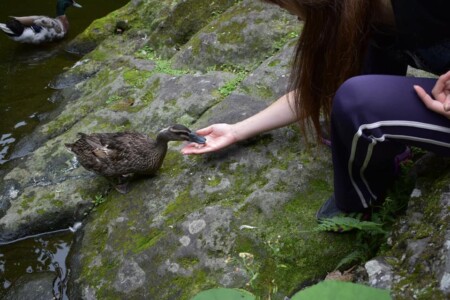 鯉やカモが泳いでおり、エサをあげる事もできる様です。