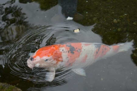 (。´・ω・)ん? 鯉じゃない魚も居る? サメ? (これは後ほど、水族館に行ったときに、何の魚か判明します)