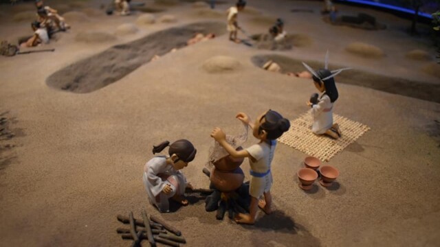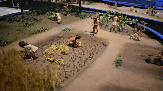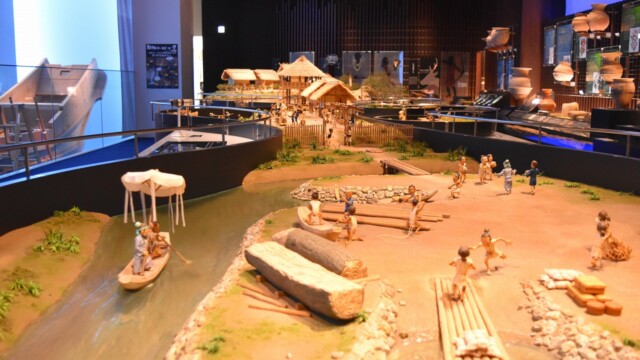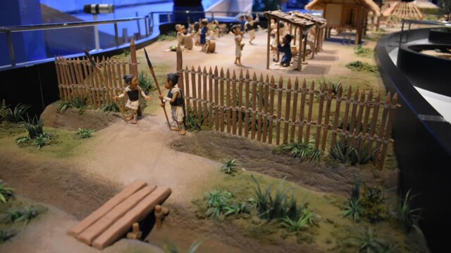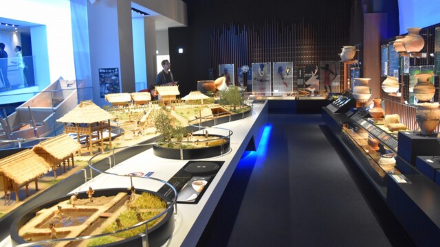 館内(有料ゾーン)の様子建物内では、発掘された遺跡がむき出しで展示されていて、本物の遺跡に触ることができます。また多数のジオラマが展示されており、弥生時代の生活を楽しく学ぶことができます。