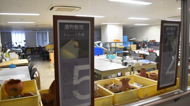 出土品が貯蔵されている部屋を見ることができたり、発掘された部品を、パズルのようにつなぎ合わせる作業部屋を見学こともできます。