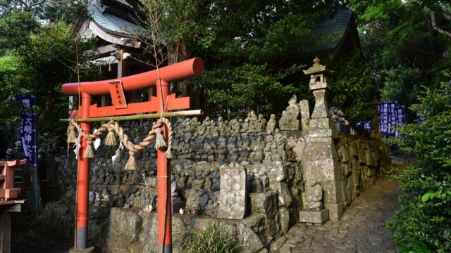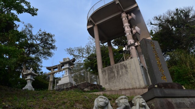 「見ざる・言わざる・聞かざる」の三猿が祀られている神社。境内の後方には、無数の猿が祀られていました。祀られている神様の猿田彦命(さるたひこのみこと)という名前にちなんで、猿石が奉納されるようになったそうです。男嶽神社では、展望台もあり、自然豊かな壱岐を見渡せます。