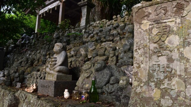 見ざる聞かざる言わざる、猿の石像群が面白い「男嶽神社」
