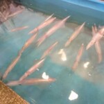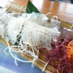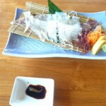 凄い❗イカの活造りなんてはじめて🎶なんて思ってたら、店員さんが「イカの頭と残ったものは天ぷらに出来ますので~。はい、こちらはイカの踊り食いです~。」と言いながら、ハサミで活きたイカのゲソをチョキン✂✨と切って醤油の入った小皿に入れます。
