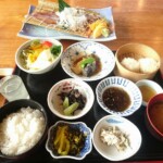 そして、後で運ばれて来たのは、サラダ、ひじき、かぼすジュース、イカの和え物、イカしゅうまい、サバの煮付け、かじめ汁等々…。