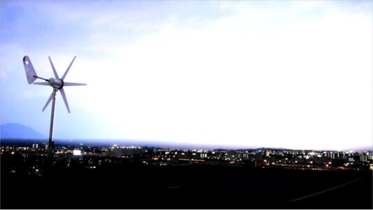 さて、もう少し定量的に測りたいな、と思い台風の日にも撮影してみました。まずはコチラからです。台風の日に風力発電を撮影